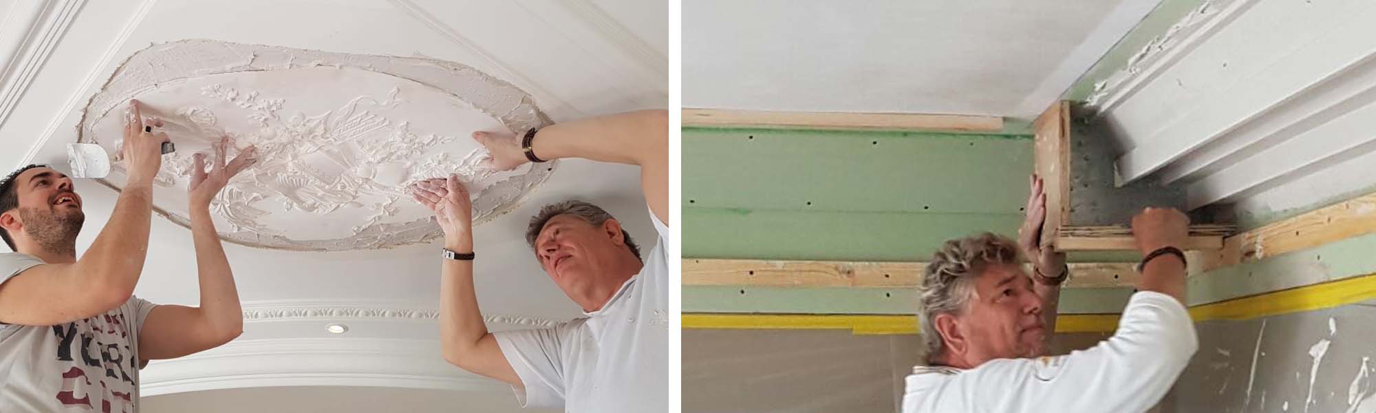 Wanneer ornamenten of lijsten beschadigd zijn, dan is het meestal mogeijk om het origineel te repareren. Ook kan gekozen worden voor verwijdering en reparatie in de werkplaats. Ook kan een mal worden gemaakt zodat meerdere identieke exemplaren gegoten kunnen worden. Bel Ruud of Berry voor het maken van een afspraak op telefoon 026 333 47 68 of stuur een email aan post@stukadoorsbedrijfgelderland.nl |